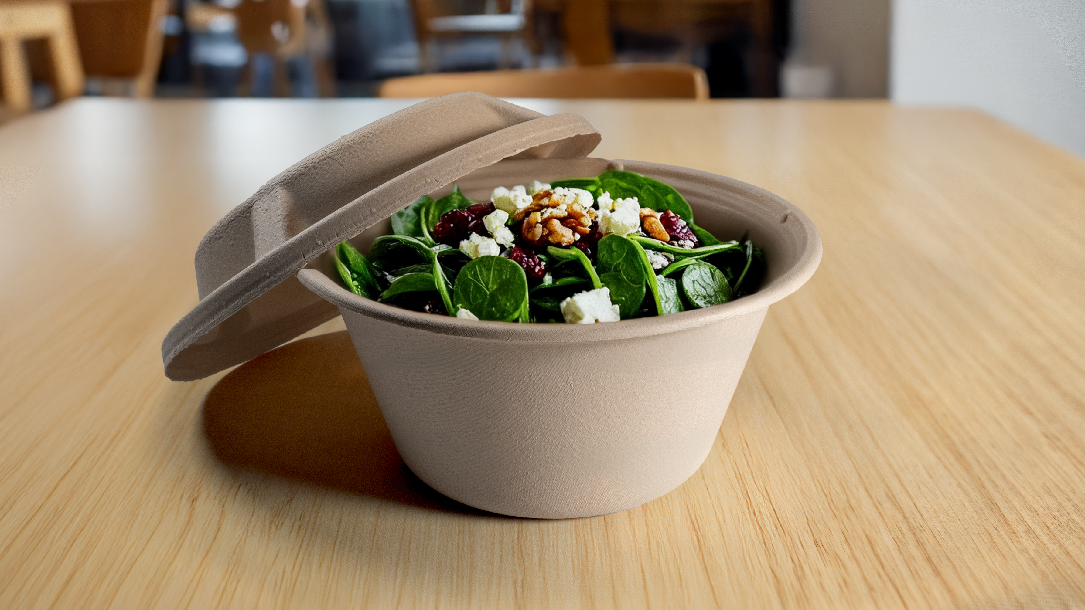 These Tellus Classic Fiber Lids have no added PFAS, are kosher certified, compostable in a commercial composting facility in under 3 months, and made in the USA with US and imported renewable plant fibers. This lid is compatible with our 24, 32, and 48 oz Bowls and the perfect solution for takeout, delivery, and room service.